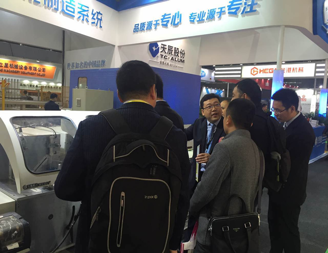 作為國內(nèi)第1家鋁材加工設(shè)備上市企業(yè),天辰鋁機(jī)攜帶自身最新、最具技術(shù)含量的產(chǎn)品亮相此次展會(huì),展位號(hào):2號(hào)館C05。展會(huì)期間,天辰股份展示了數(shù)控四頭組角生產(chǎn)線、數(shù)控雙料鋸切中心、五金鉸鏈自動(dòng)生產(chǎn)線、新型高速四軸加工中心、重型數(shù)控雙頭切割鋸五臺(tái)最受歡迎的高端設(shè)備和最新設(shè)備,吸引了大批客戶駐足觀摩以及得到眾多觀展商的認(rèn)可,開展期間天辰股份展位人流絡(luò)繹不絕。